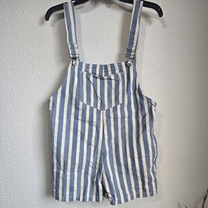 Zara White & Blue Stripe Short Denim Jumpsuit Size S