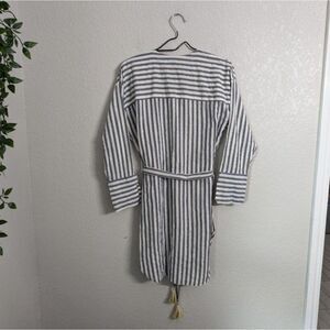 Zara White Blue Striped Button Down Tunic Shirt Long Sleeve Metallic Tassels XS