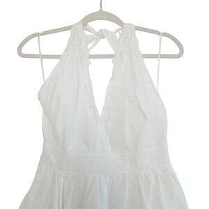 Zara White Cotton Eyelet Embroidered V-Neck Mini Halter Dress Lined Size Large