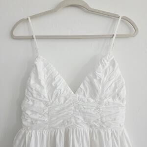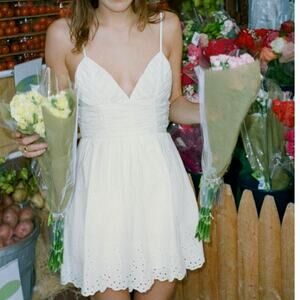 Zara White Cotton Eyelet Embroidered V-Neck Mini Spaghetti Strap Dress Sz Medium