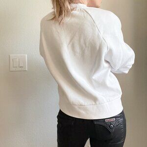Zara cropped sweatshirt, white crewneck, minimalist loungewear, basic layering piece, fall casual outfit, everyday pullover, neutral capsule wardrobe