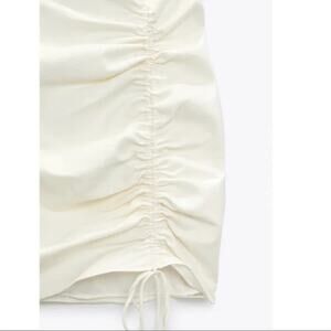 Elegant backless dress with ruched detailing. Short sleeves and collared neckline. Perfect for a chic look.