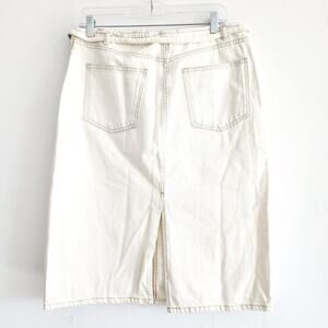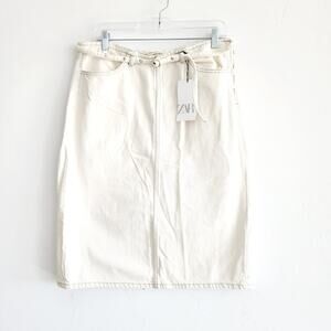Zara White Denim Belted Midi Pencil Skirt with Pockets and Back Slit Size Large