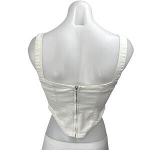 Zara White Denim Sleeveless Square Neck Corset Bandeau Bustier Crop Tank Top S