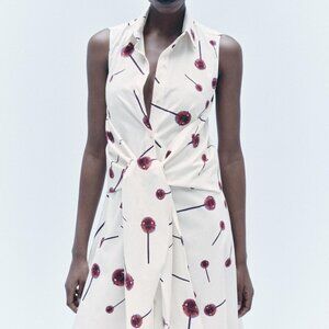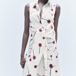 Zara White Dress with Red Floral Print