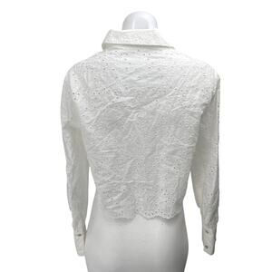 Zara White Embroidered Eyelet Long Sleeve Collar Button Up Crop Blouse Shirt S