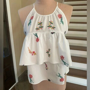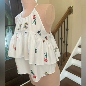 Zara White Embroidered Tiered Halter Floral Resort Tank Top Size XS