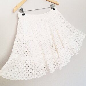 Zara White Eyelet Embroidered Tiered Mini Skirt M High Waist Coquette Romantic