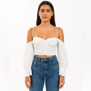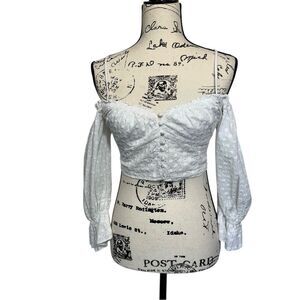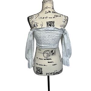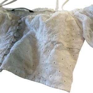 Zara White Eyelet Milkmaid Coastal Cowgirl Crop Top, Small