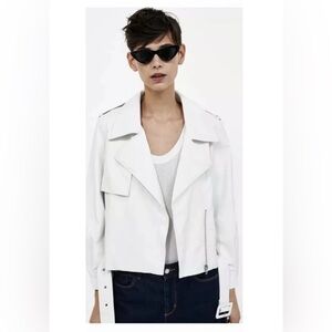 ✨ Keywords for search: white moto jacket, vegan leather jacket, belted biker coat, Zara faux leather, edgy chic