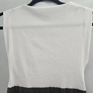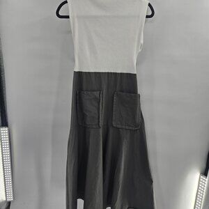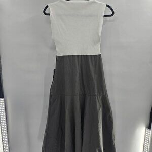 Zara White Green Cotton Ribbed Pockets Sleeveless Midi Dress Medium