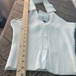 Stylish halter blouse with button-front. Perfect for a chic look.