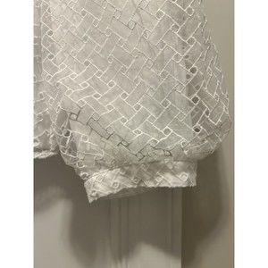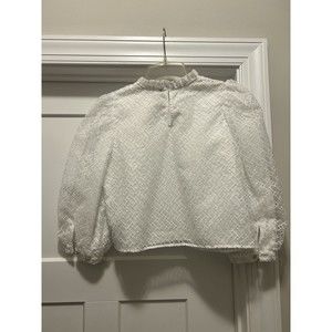 Zara White High Neck Blouse with Layer Embroidered Puff 3/4 Sleeves Size Medium