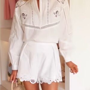 Elegant high waist shorts. Features delicate lace trim. Perfect for summer.
