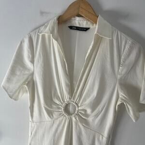 Zara White Keyhole Cutout Dress Size Medium. Excellent condition. White.cream color. Cutout at center of chest. V neck. Short Sleeve. Fully lined. Mini dress.