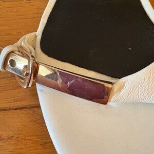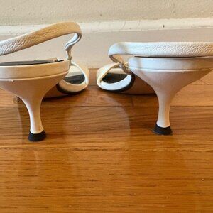 Zara White Leather Kitten Heeled Sandals W/ Gold Buckle, Sz 38