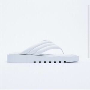 Zara White Leather Quilted Slides Shoes Size 8 US