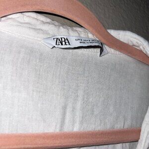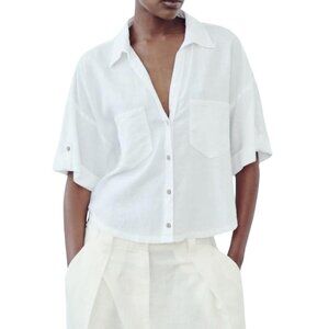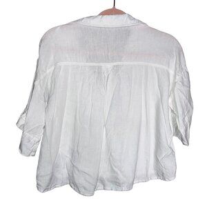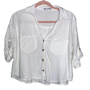 Zara White Linen Blend Short Sleeve Button Down Top S