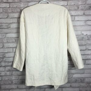 Zara White Long Jacquard Blazer Jacket Sash Tie XS