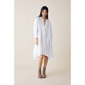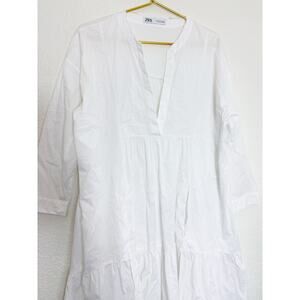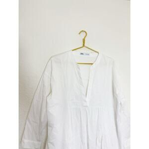 Zara White Long Poplin Midi Dress Size Small Cotton Lagenlook Quiet Luxury