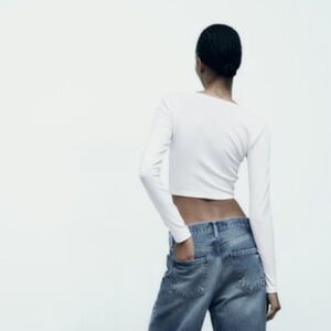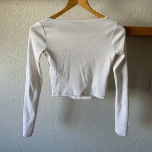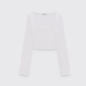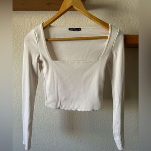 Zara White Long Sleeve Square Neck Top Ribbed Size Small