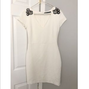Zara white mini dress. Back zipper form fitting. Zara code Taller 529 Zin Size: Medium. Shipping the same day!