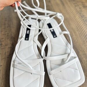 Elevate your summer style with these chic white sandals from Zara, featuring a sleek geometric design and a contemporary silhouette. Crafted for both comfort and elegance, these sandals are perfect for any occasion, offering a minimalist yet fashion-forward aesthetic.