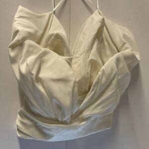 Zara White Off-Shoulder plunged ruched Women's Top Sz Small