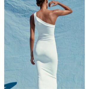 Step out in style with this elegant white one-shoulder dress. Perfect for any occasion, this dress offers a sleek and sophisticated look.