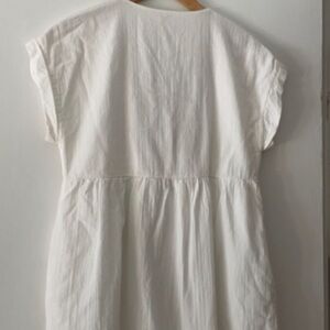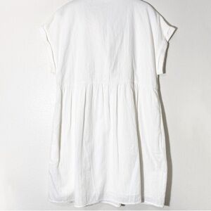 Zara White Peasant Embroidered Lightweight Gauzy Mini Dress Pom Poms& pockets M