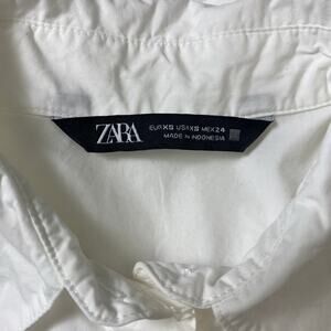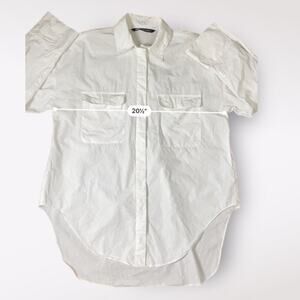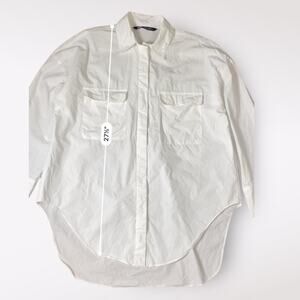 Zara White Poplin Oversized Two-Pocket Button-Up Shirt Size XS Minimalist