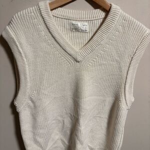 Zara White Ribbed Knit Oversized Sweater Vest- Size Small