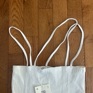 Elevate your style with this cute white ribbed tank top from zara. Perfect for any occasion, this versatile top w/ asymmetrical straps is a must-have for your summer wardrobe.