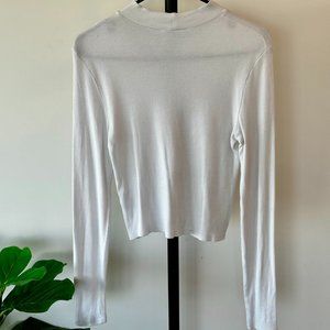 Super cute white ribbed turtleneck from Zara. Great closet staple for fall! Thick material -- bra doesn't show through. Pair with high-wasited jeans and black booties