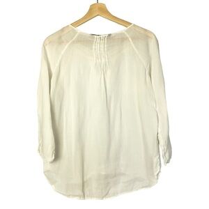 Zara White Round Tie Neck Lightweight 3/4 Long Sleeve Blouse M