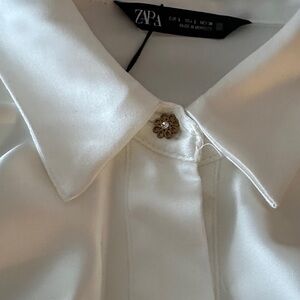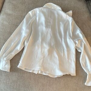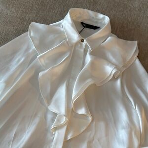 Chic white blouse with dramatic ruffle detail. Perfect for elevating any outfit.