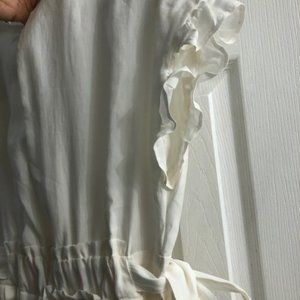 Ruffle sleeves, sinched at the waist, pleated from the waist - really gorgeous and flowy