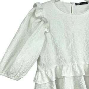 Zara White Ruffle Peplum Balloon Sleeve Blouse Size XS