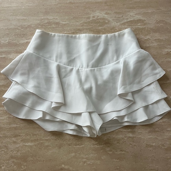 Stylish white skorts with elegant ruffles. Perfect for versatile wear.