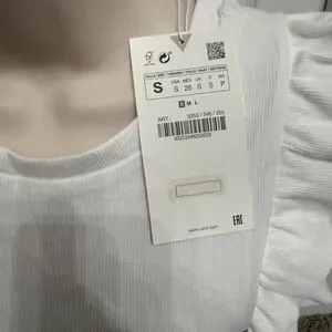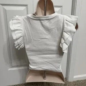 Zara White Ruffle-Sleeve Ribbed Crop Top