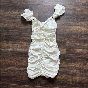 Zara White Ruffle-Strap Ruched Mini Dress