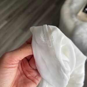 Dress is a Small but Fits like an XS. Has a small tear on the inside, not noticeable as shown in picture.