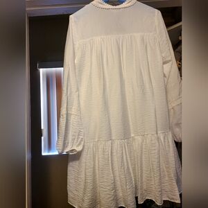 Zara White Ruffled Tiered Sundress with Bishop Sleeves