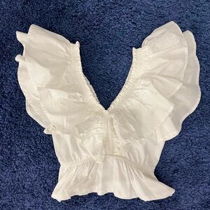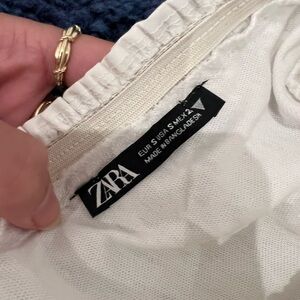 Zara white blouse. Beautiful ruffles that give a fantastic dimension and shape! You can wear it on or off the shoulder. Never worn, great condition.