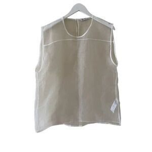 Zara White Sheer Rib Sleeveless Women’s Crewneck SZ L #1696