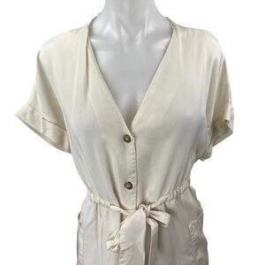 Zara White Short Sleeve V-Neck Button Down Belted Tie Waist Mini Shirt Dress XS