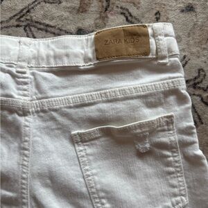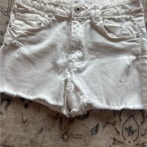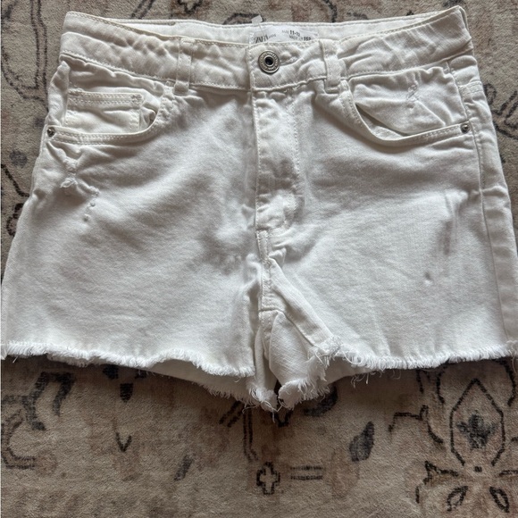 These white shorts from Zara feature a high-waisted design with a stylish distressed finish. The raw, frayed hem adds a casual touch, making them perfect for relaxed outings. Crafted for comfort and style, they are a versatile addition to any wardrobe.