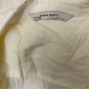 Zara White Smocked Button-Front Cotton Shirt Sz-Small