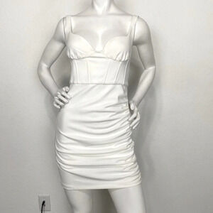Zara White Sweetheart Neck Draped Corset Sleeveless Bodycon Mini Dress Size M