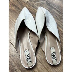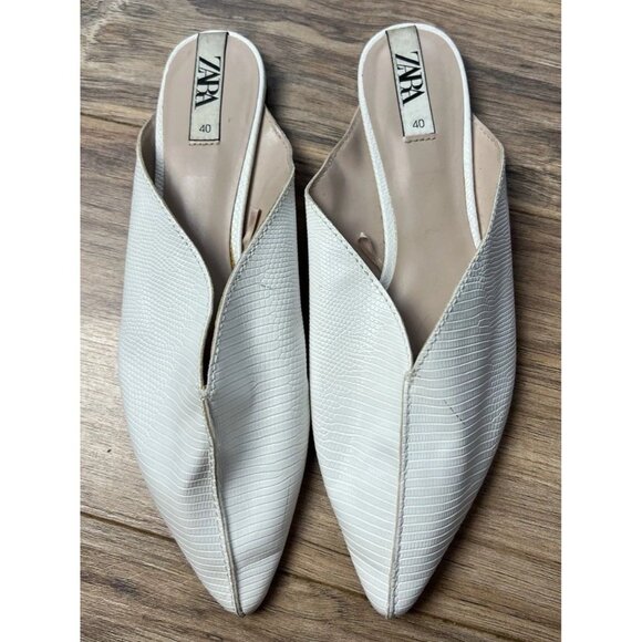 Zara White Textured Croc Leather Mules Pointed Toe EU 40/ Size 9 Women’s